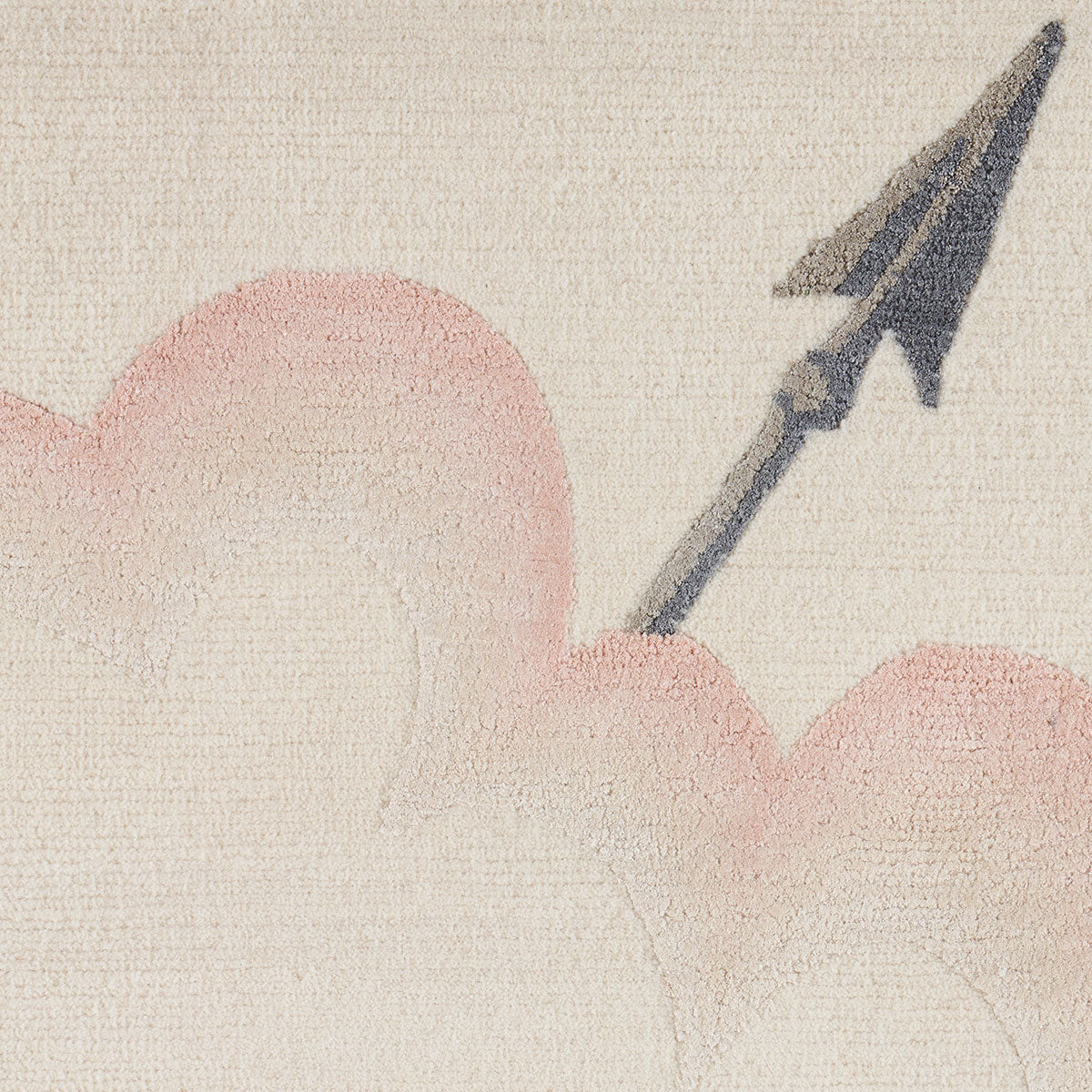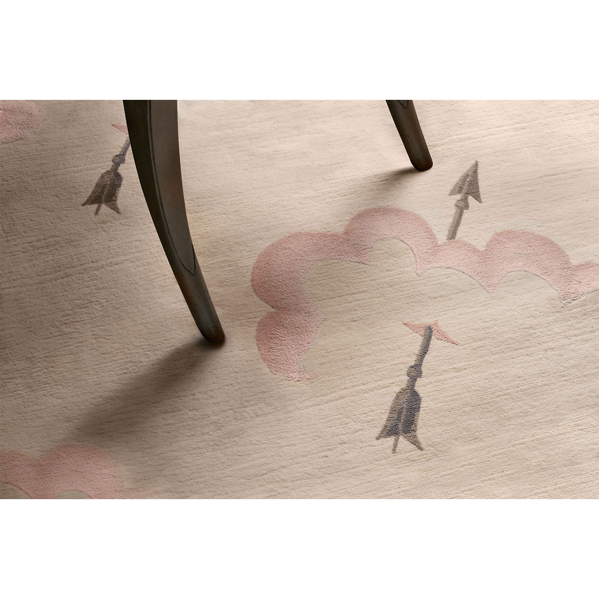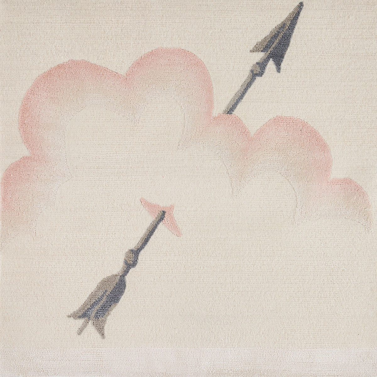 Mixing the romantic and the profound, Charlap Hyman & Herrero’s hand-knotted wool and silk Mercurio rug was influenced both by Gio Ponti’s expressive ceramics and the foreboding film sets of Salo. The lush ombre clouds, done in pure silk, are pierced by arrows. The rug is finished by an understated silk border.