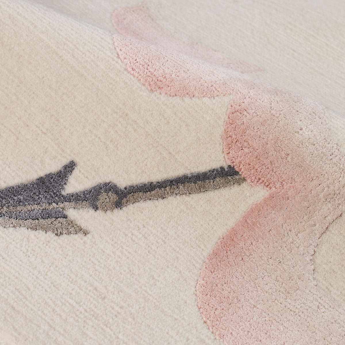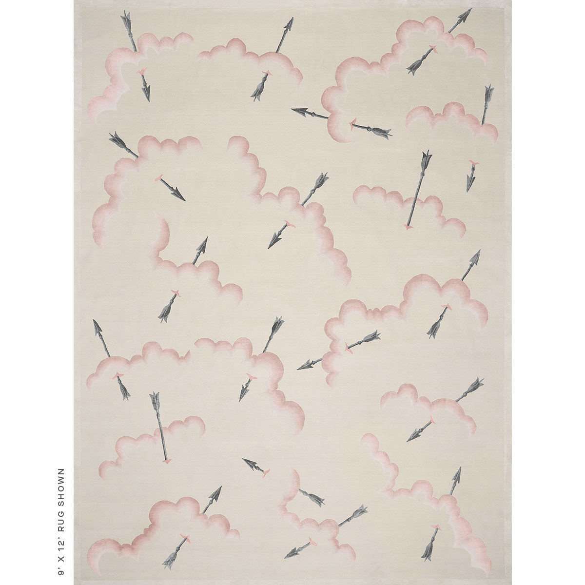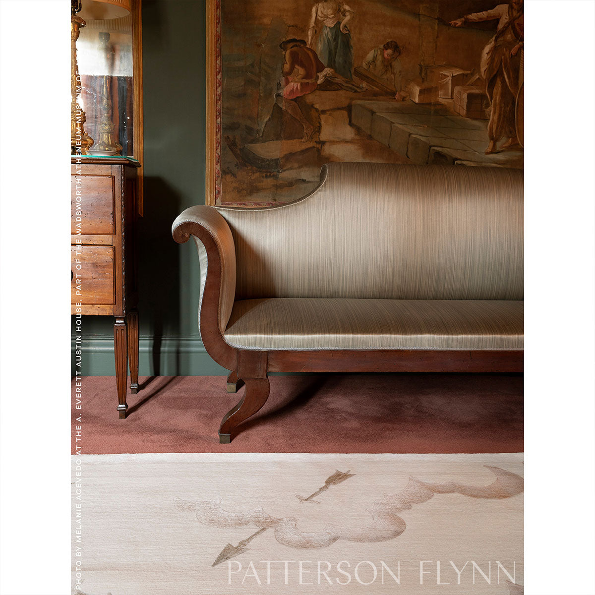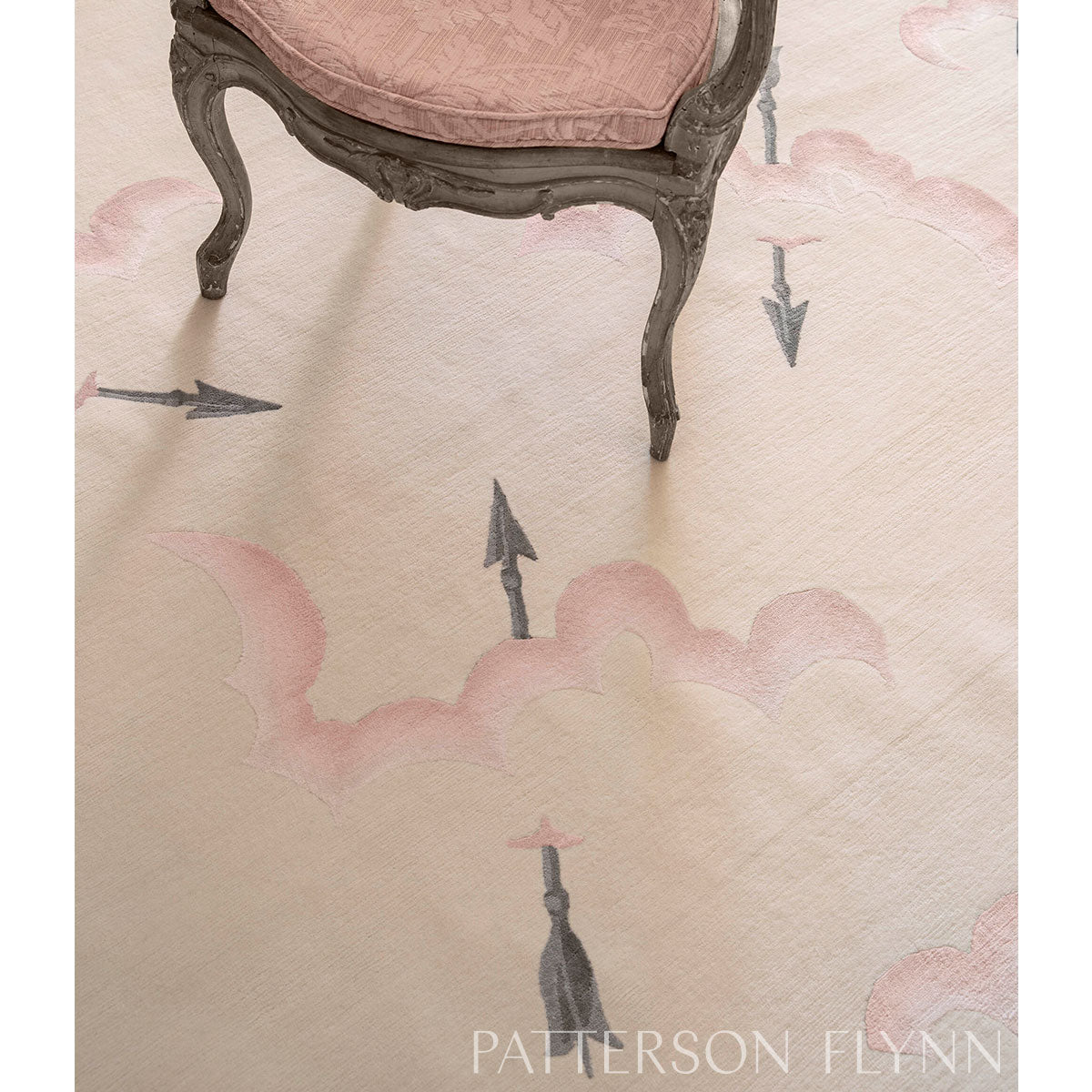 Mixing the romantic and the profound, Charlap Hyman & Herrero’s hand-knotted wool and silk Mercurio rug was influenced both by Gio Ponti’s expressive ceramics and the foreboding film sets of Salo. The lush ombre clouds, done in pure silk, are pierced by arrows. The rug is finished by an understated silk border.
