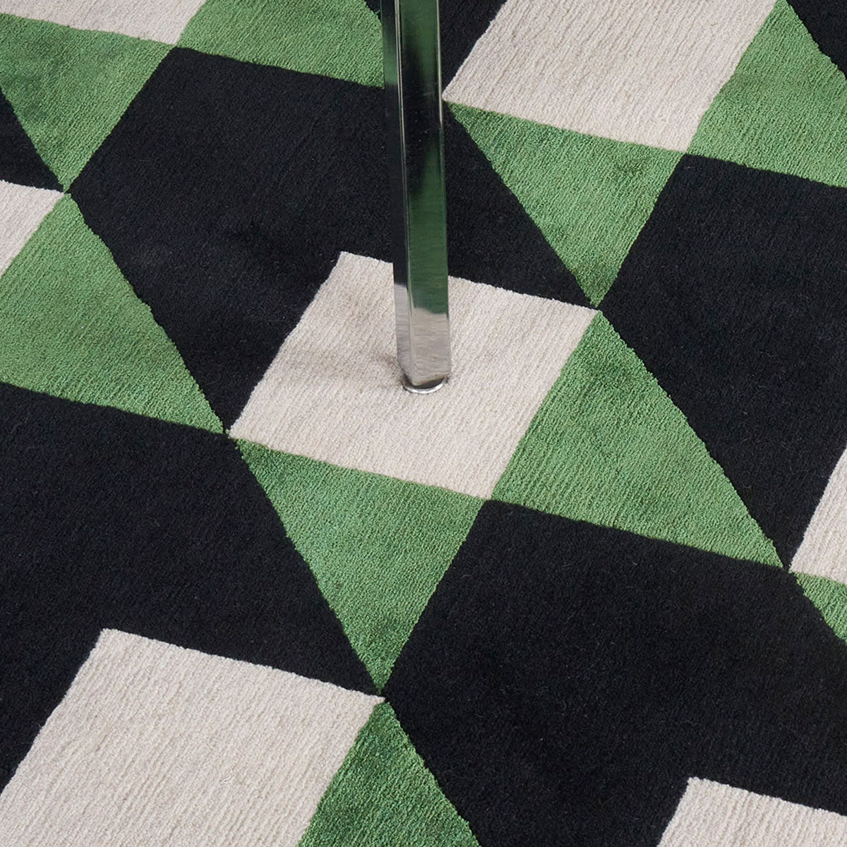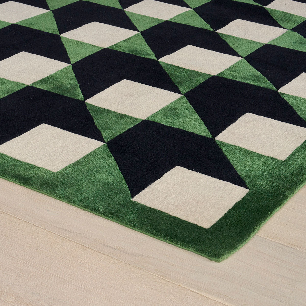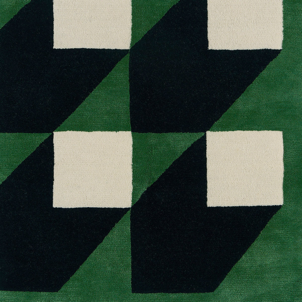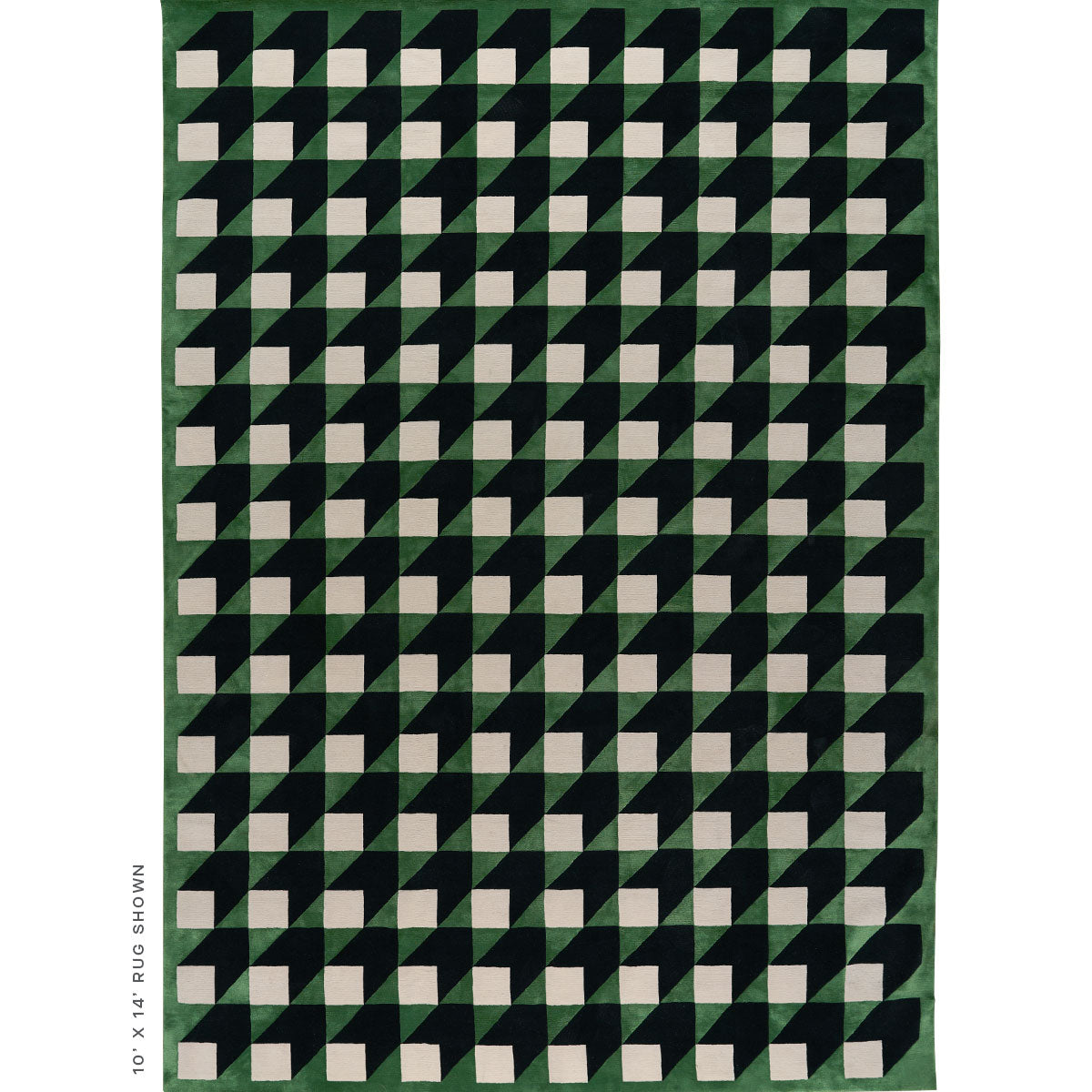 Graphic and bold, Jupien has a ‘70s modern appeal that’s just as at home with Georgian antiques as it is with Mondrian and Lucite. A grid of ivory squares march across an emerald-green background, with elongated black chevrons creating a three-dimensional illusion. A combination of fibers adds to the effect: the motifs are in wool while the background is silk, offering a textural contrast and an unparalleled hand. Part of Johnson Hartig’s first collection with Patterson Flynn, Jupien features a Tibetan hand-knotted construction.