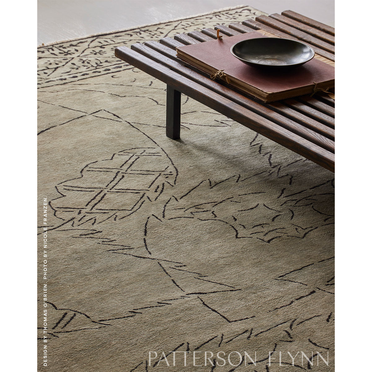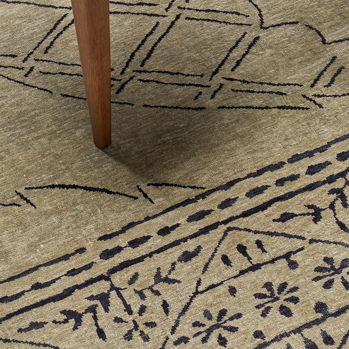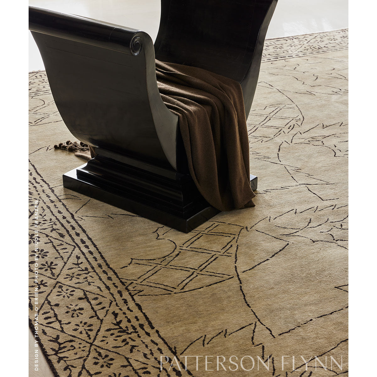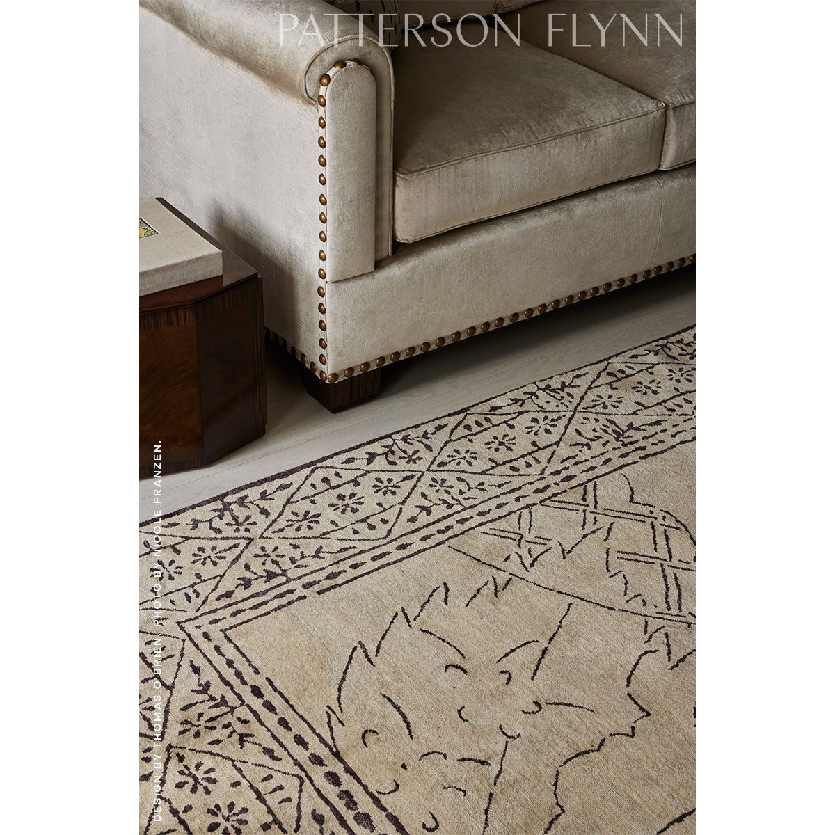 Designed in collaboration with Thomas O’Brien, Kyoto was conceived as a companion to our Haiku rug. Haiku’s main motif, inspired by a vintage Indian hand-block print, forms the border while the central field of large-scale overlapping leaves is drawn from an Art Deco-era piece from O’Brien’s collection of antique kimono screens. The updated colors inject the formal silk Persian with a certain freshness.