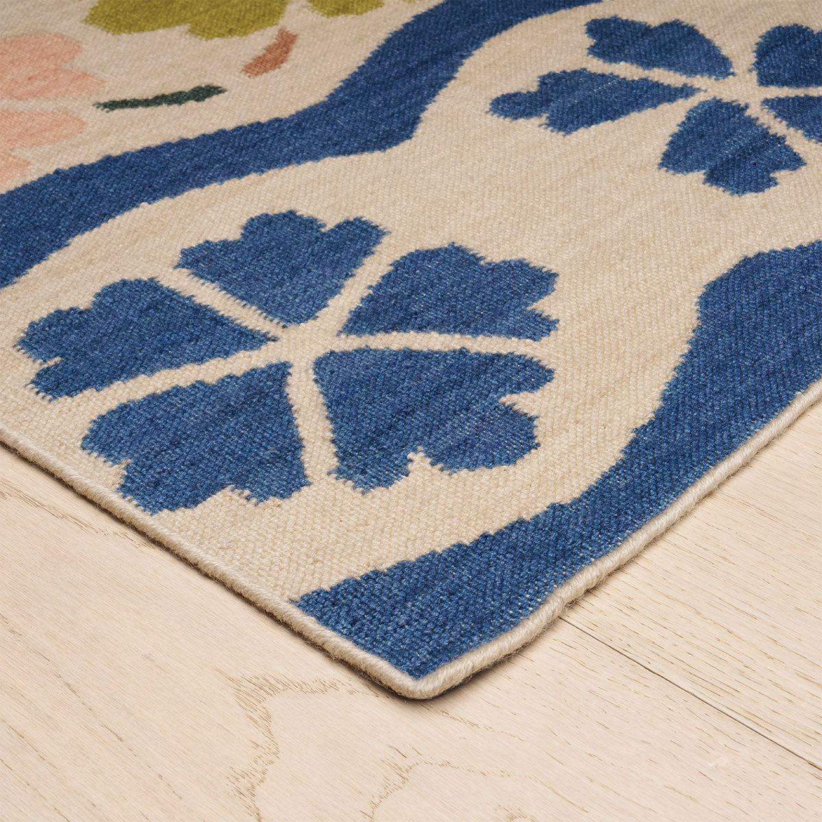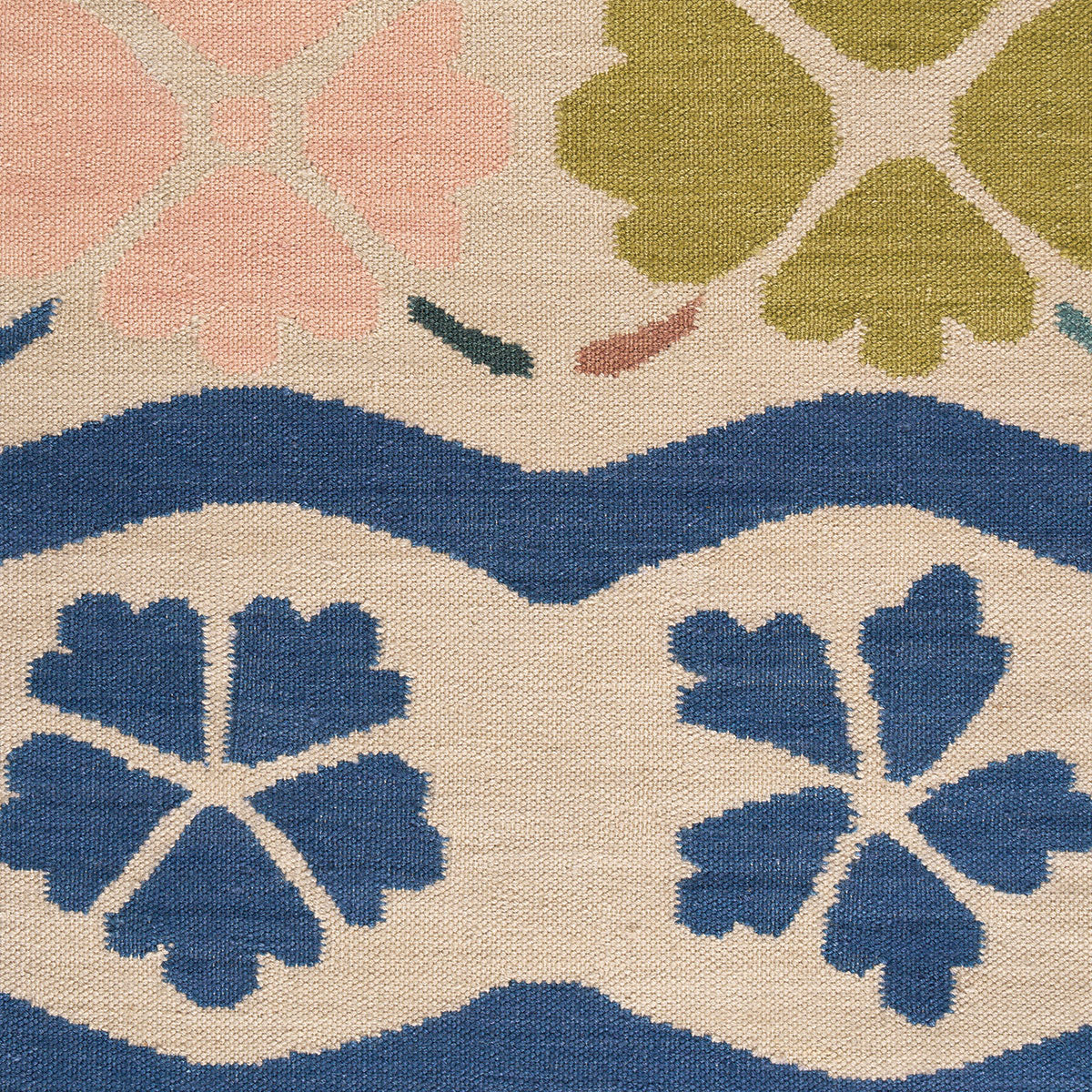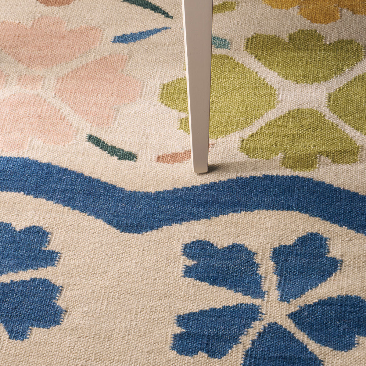 Evoking the spirit of Matisse’s paper cutouts, Flora captures the art of the hand. An all wool flatweave, the abstract multi-color floral forms drift across a painterly ground and are framed by a graphic border.