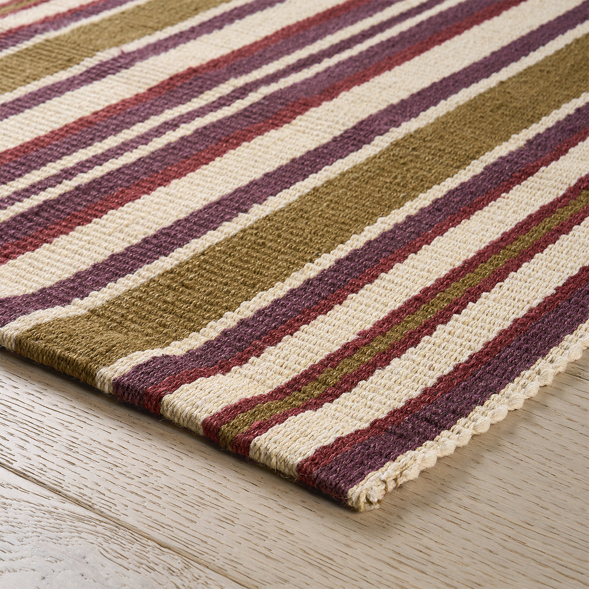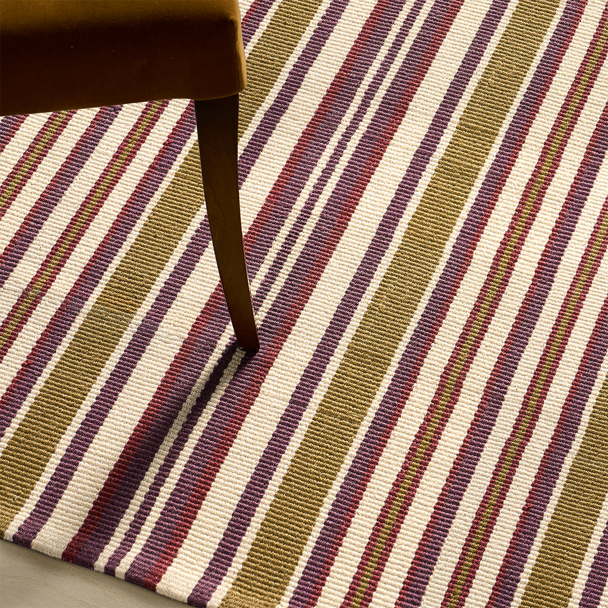 Jaunty vertical stripes with a sunwashed feel define Lago, a flatweave with a distinctive rib that looks casually tailored. Done in a mix of linen, jute, and wool, the rug has a cheering thick-and-thin rhythm that’s particularly well suited to stairs and hallways.