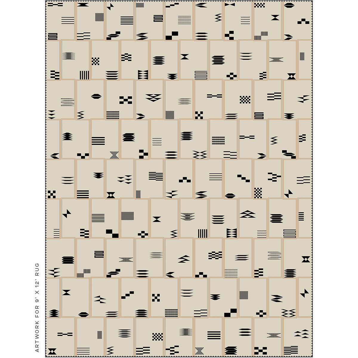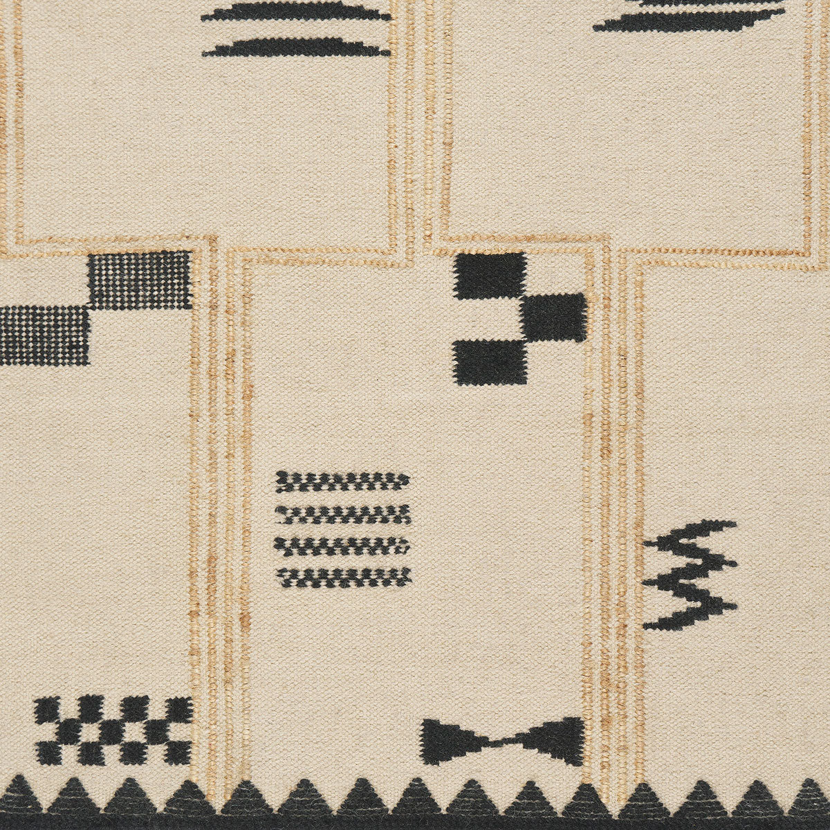 Adavi draws from an antique African textile, weaving hand-dyed fibers, geometric glyphs, and a raised framework into a series of small, textural compositions—finished with edging that gives the flatweave unexpected depth. Its inspiration brings a sense of history and artistry to the design, grounding its modern geometry in a rich cultural lineage.