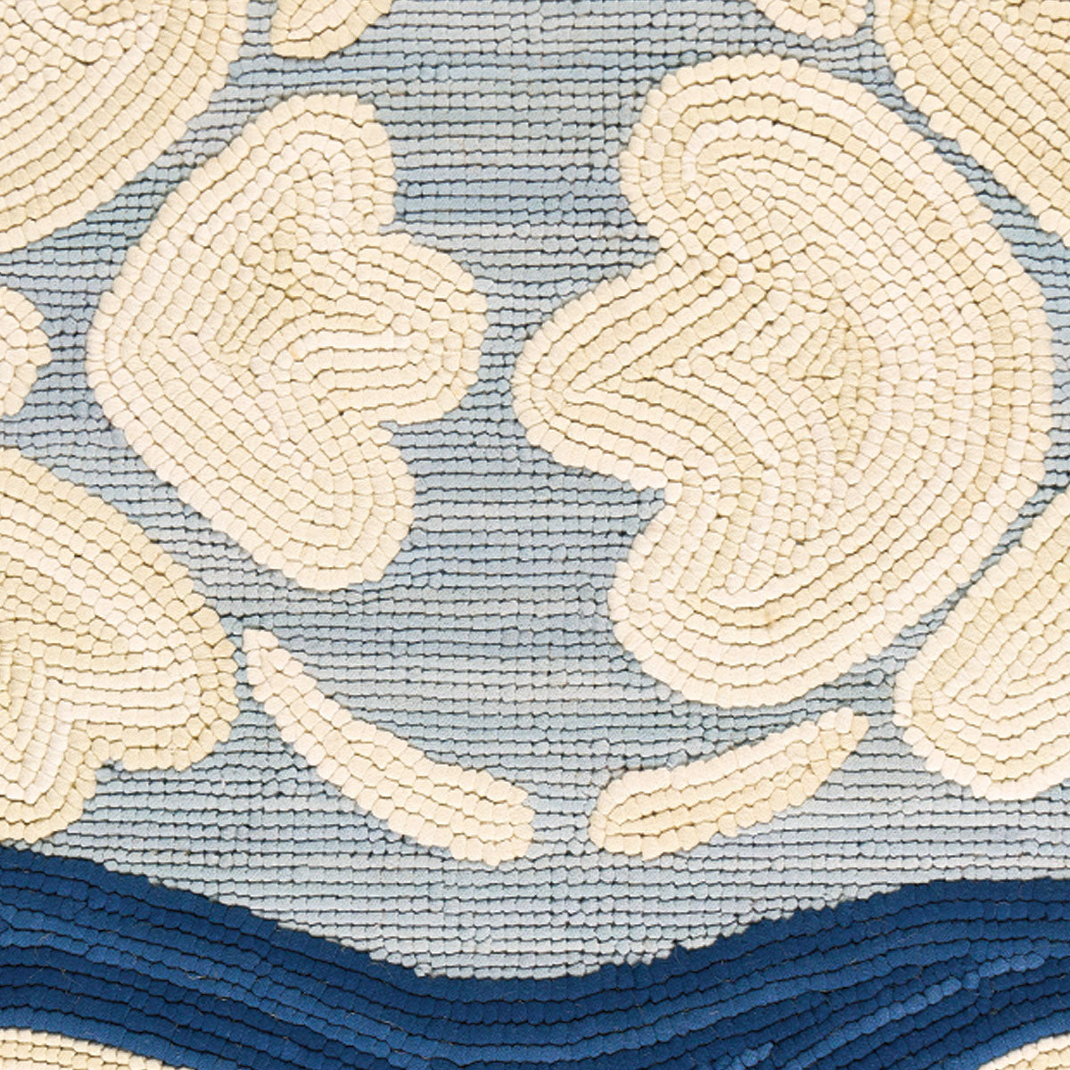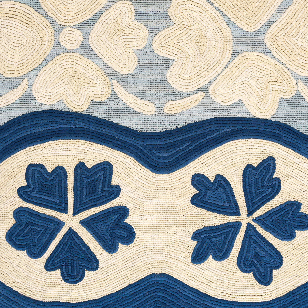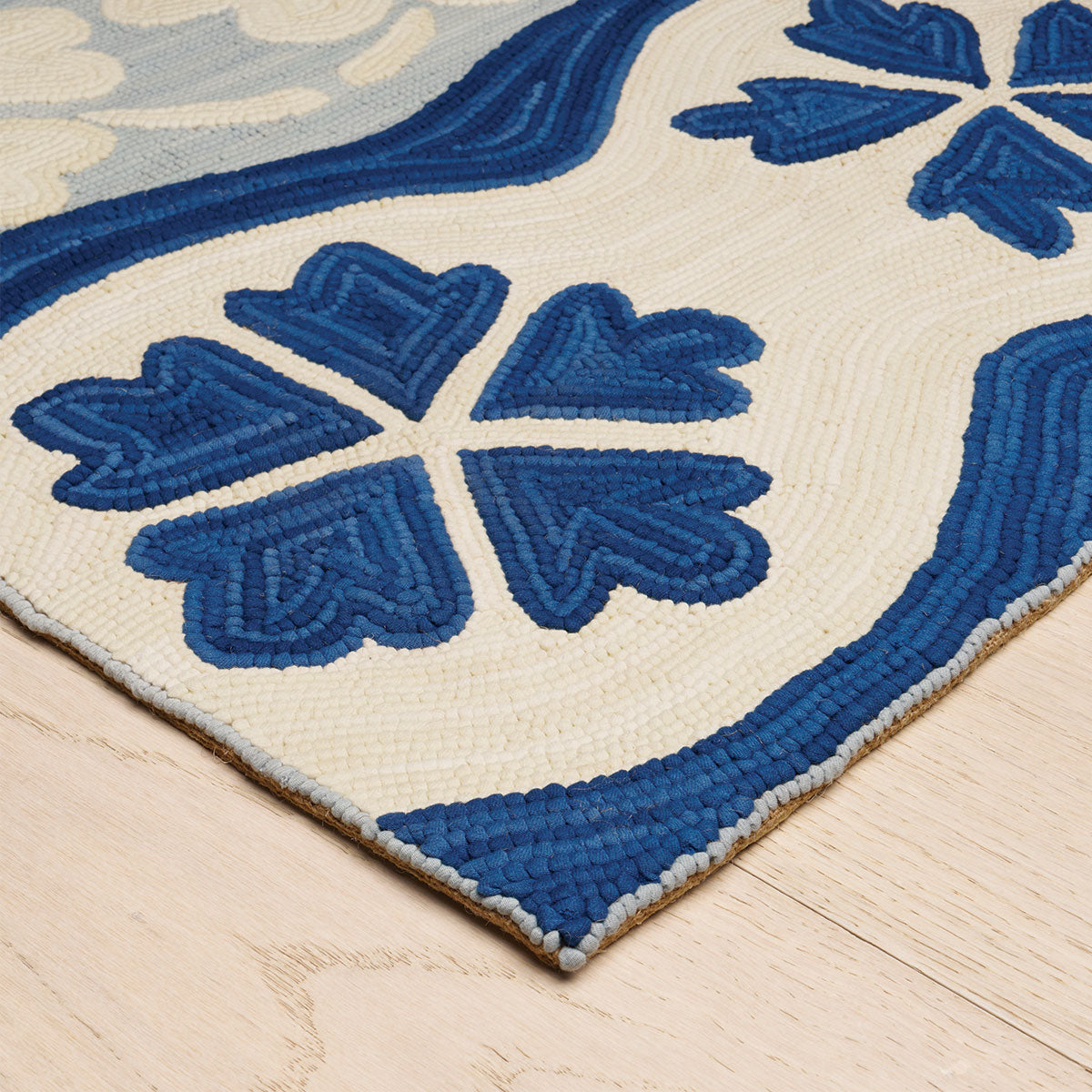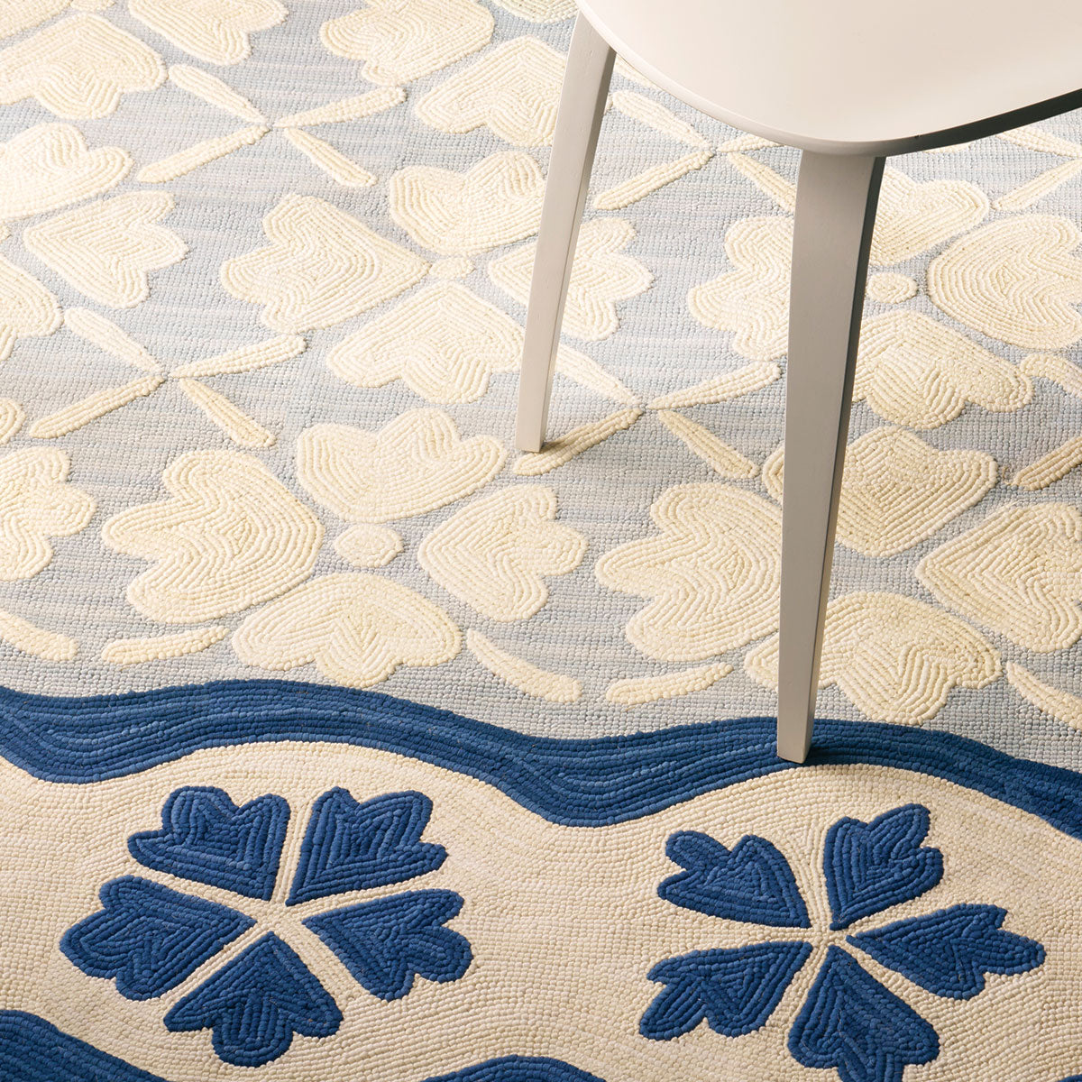 Evoking the spirit of Matisse’s paper cutouts, Flora captures the art of the hand. Made of hand-hooked cotton, the abstract floral forms drift across a painterly ground and are framed by a graphic border.
