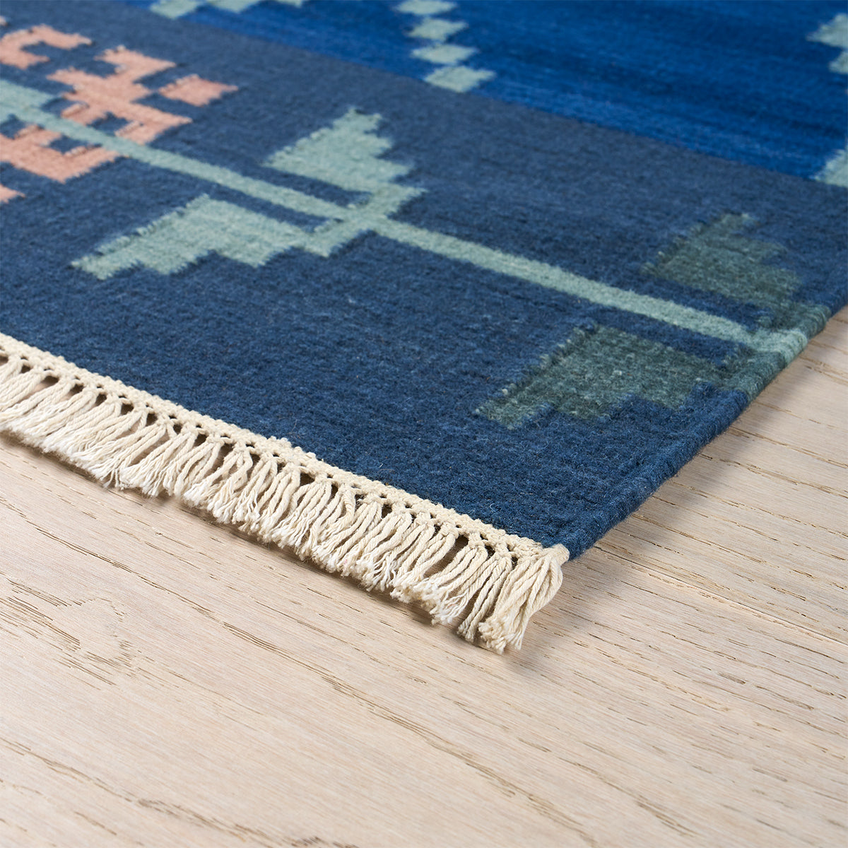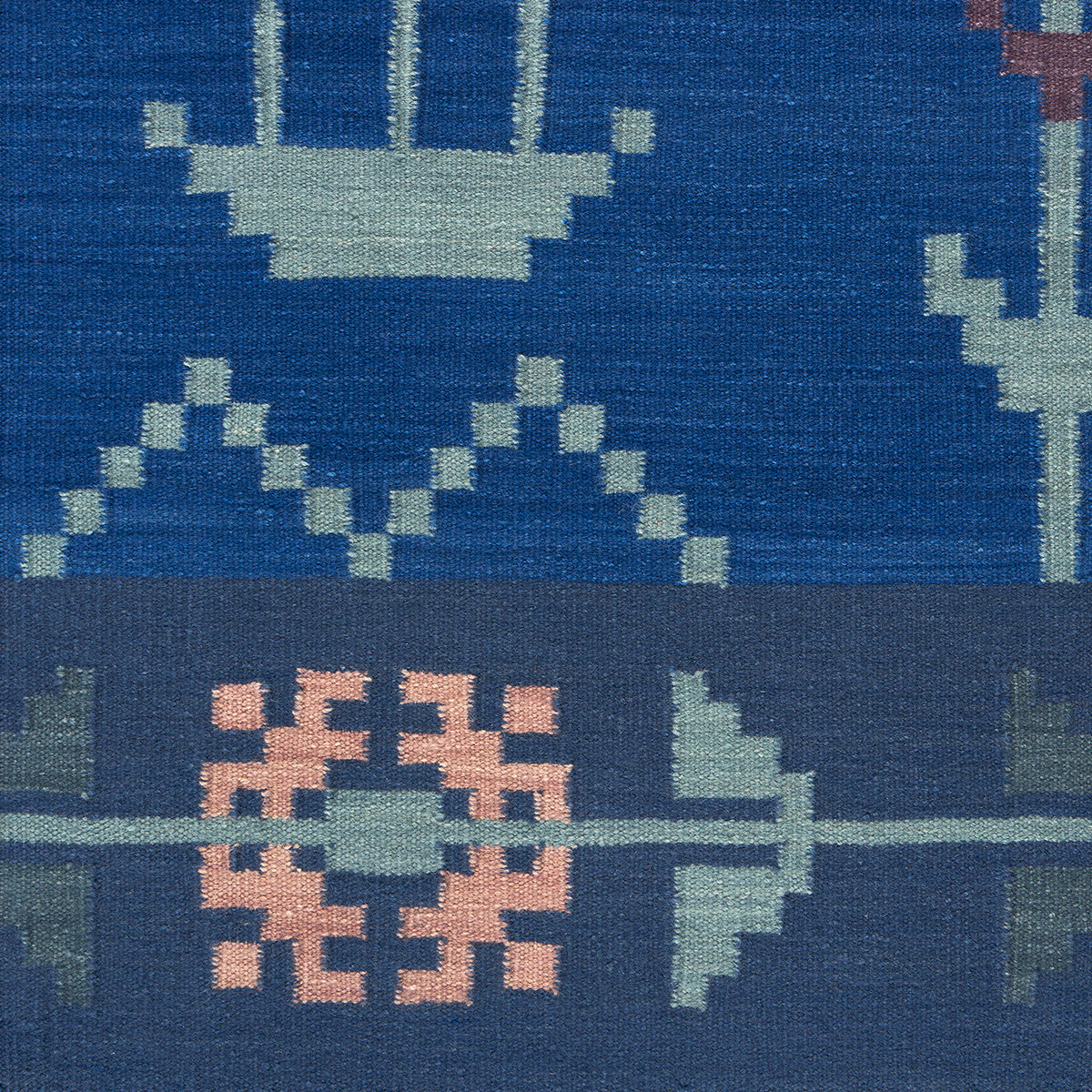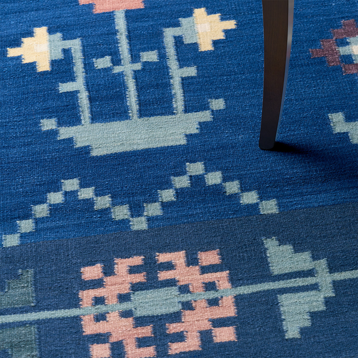 Inspired by an antique Swedish rug, Freyr’s floral design feels as if it’s sprouting from the garlanded border. The wool flatweave has a spare, almost geometric quality that makes it exceptionally easy to use and adaptable to a range of interiors.