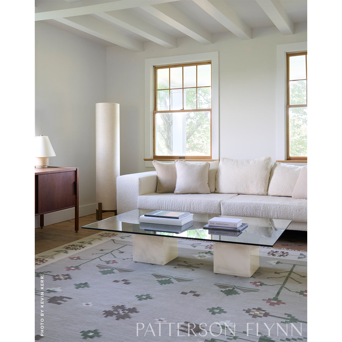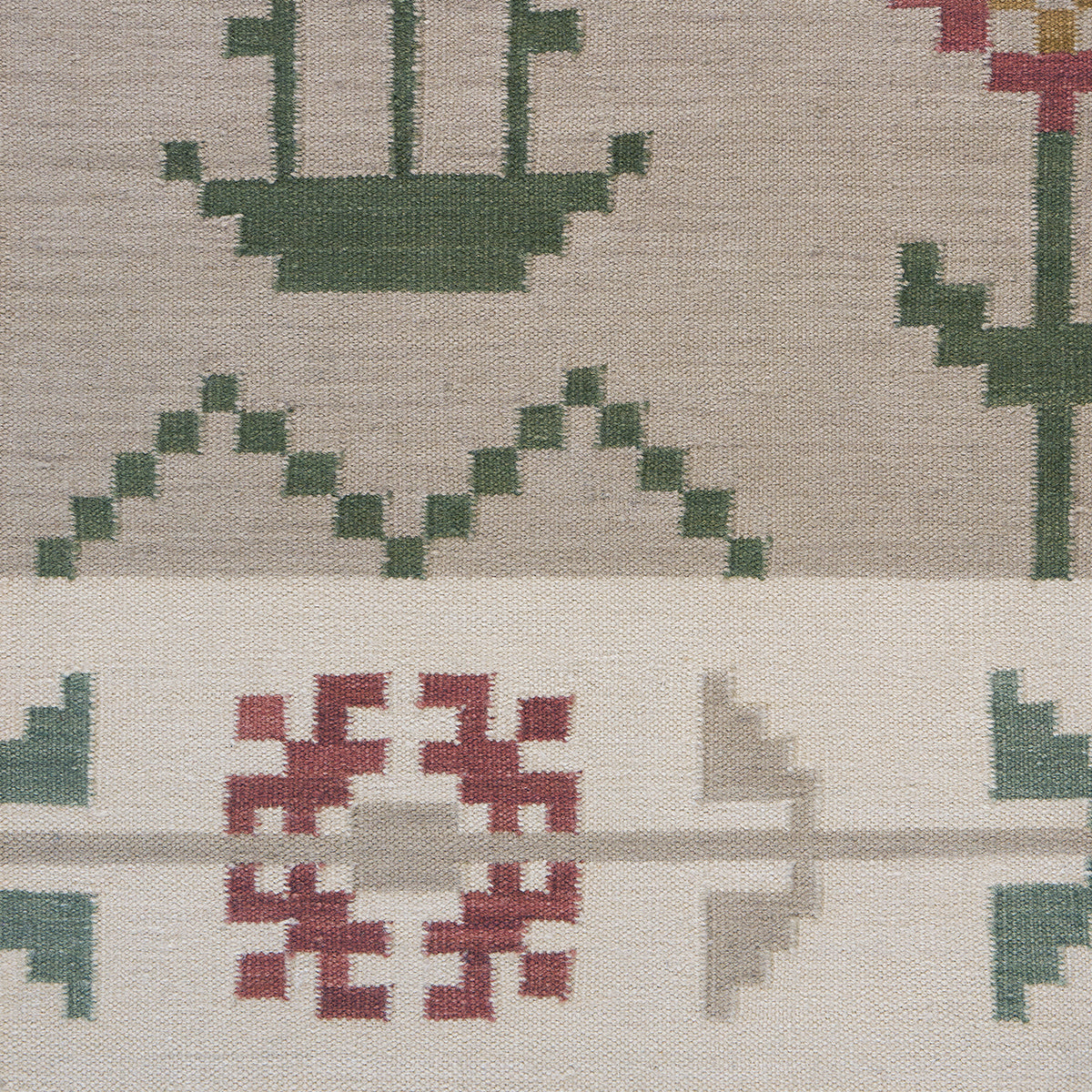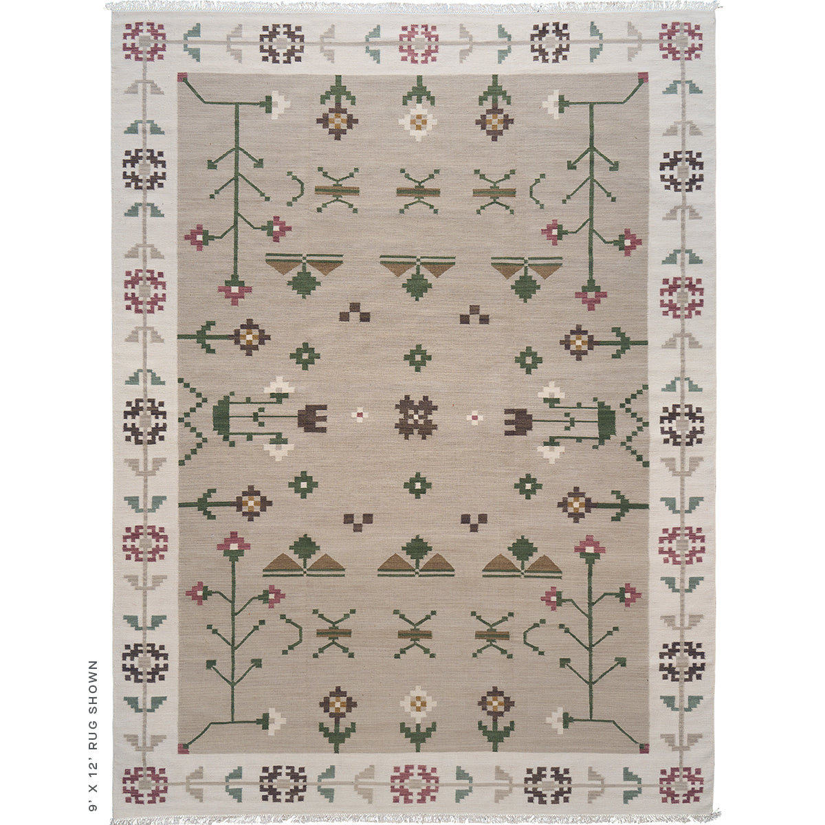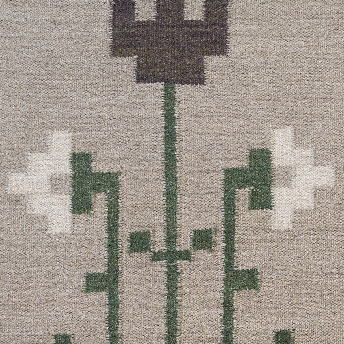 Inspired by an antique Swedish rug, Freyr’s floral design feels as if it’s sprouting from the garlanded border. The wool flatweave has a spare, almost geometric quality that makes it exceptionally easy to use and adaptable to a range of interiors.