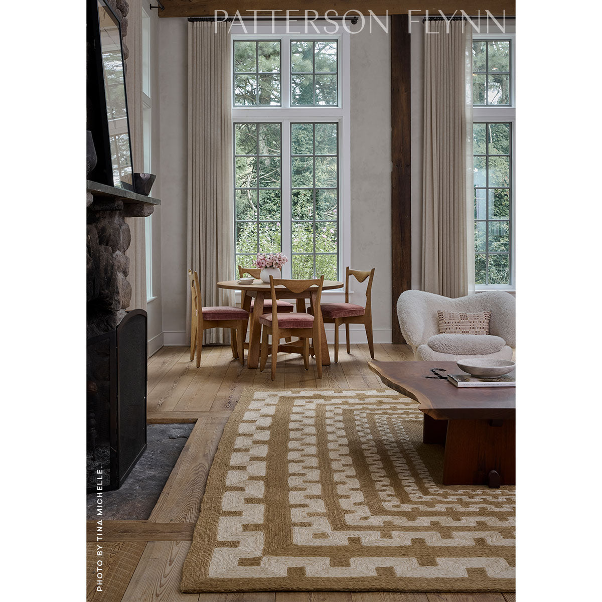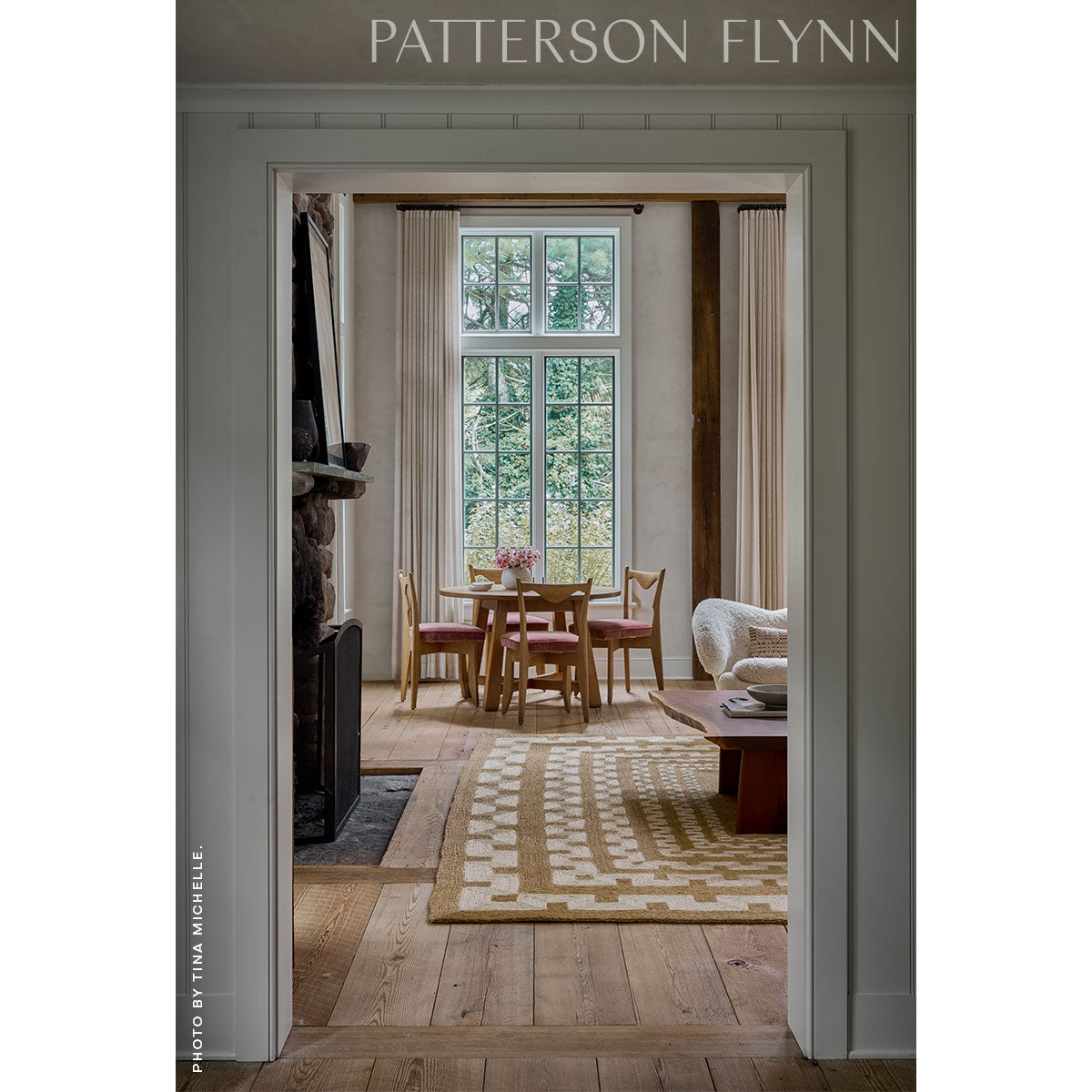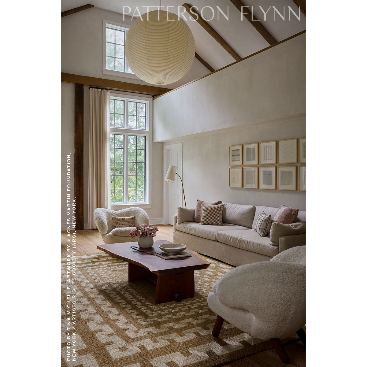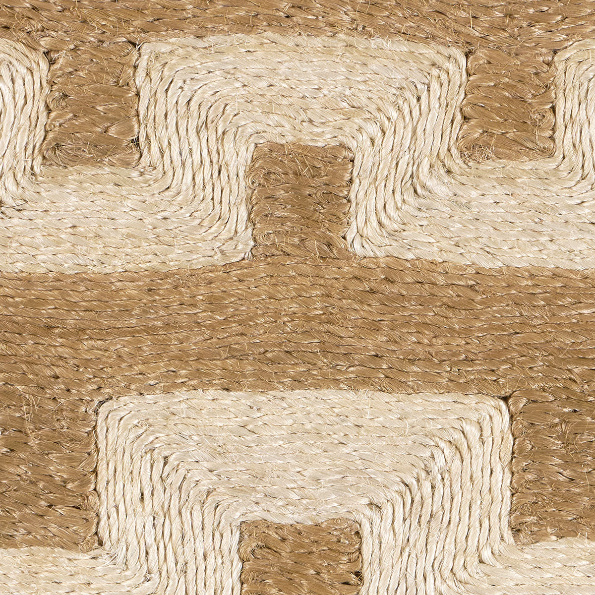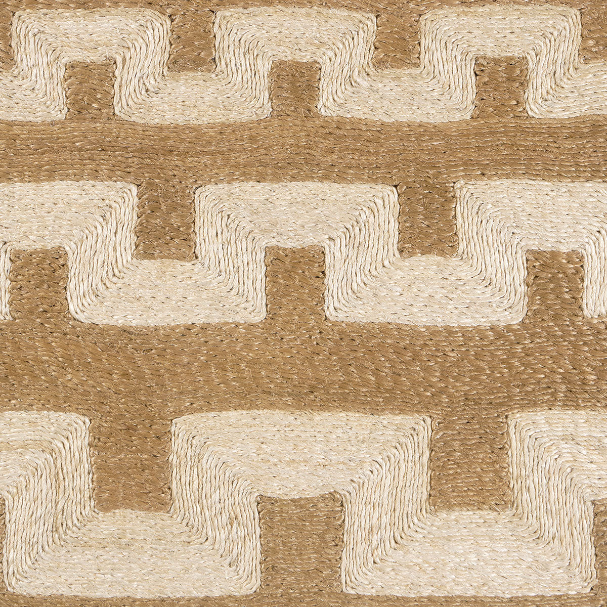 Based on an original silk and wool design by Timothy Whealon, hand-coiled abaca transforms the feel of La Foce, turning a luxe design into something a lot less formal. While the blue colorway emulates the original’s ombré with crenellated rings that go from inky indigo to aqua, the two-color palette of the natural colorway has a sleek and graphic personality.