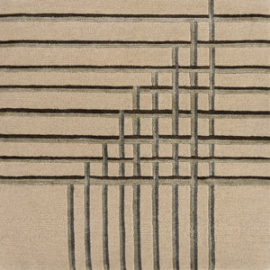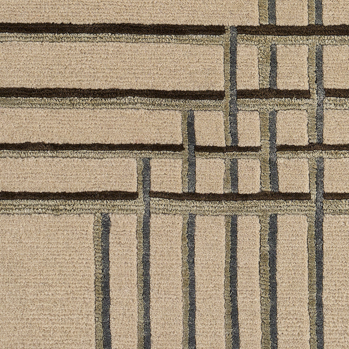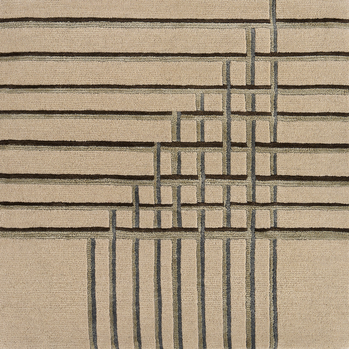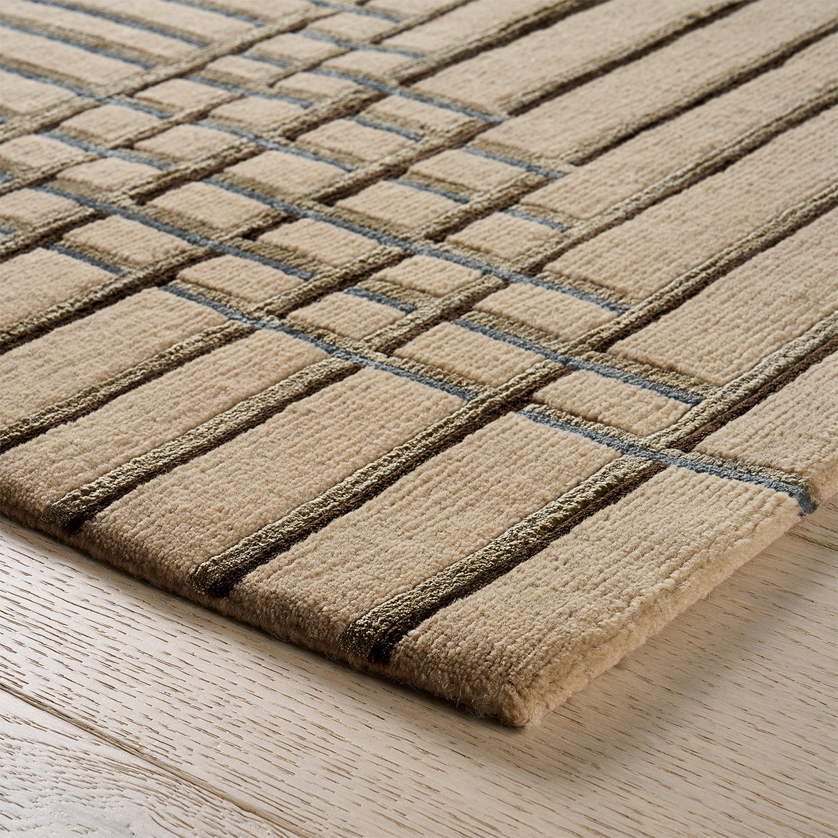 Van Alen’s design is deceptively simple, but its stripes are as elegantly engineered as the Art Deco building that inspired it. Named after the architect of the Chrysler Building, the Tibetan hand-knotted wool and silk rug’s linework is done in pure silk with subtle shadow detailing, giving the delicate bars a dimensional, gilded feel. Interwoven at the corners, the pattern can be tailored to fit around a fireplace hearth or a room’s architecture.